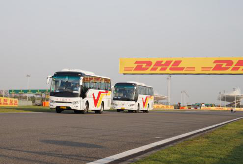 在随后的三天比赛期间,车队全体驾驶员服从指挥、听从安排,严守时间要求,注重服务细节,确保服务质量。尽管每天四、五点起床,但是每天提早准备,按时待命,以优质的服务赢得了客户的认可。每日的行驶路程虽然不长,但是因为需要进入赛道,同时为体现与国际性赛事相匹配的服务保障,主委会对于车辆清洁度、行驶路线、停车位置等都有精确要求。车队在现场管理人员的协调指挥下,列队整齐,井然有序,体现出了大客车龙头企业应有的品牌形象。大赛期间共为主办方提供99车次用车,出色完成客车保障服务,为大赛的顺利举办打下了扎实的基础。